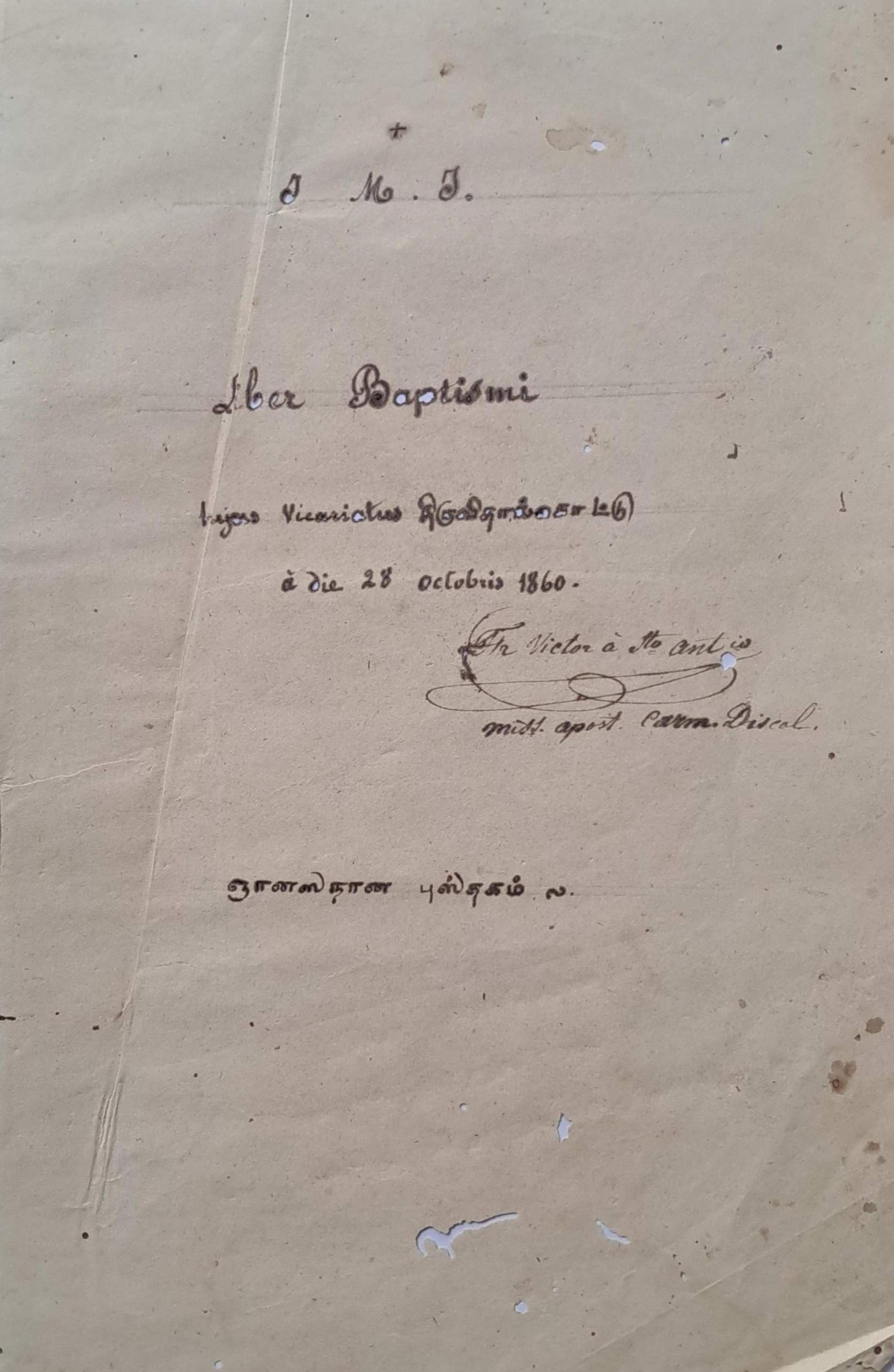 First Baptism Register signed by Fr. Victor on 28.10.1860.