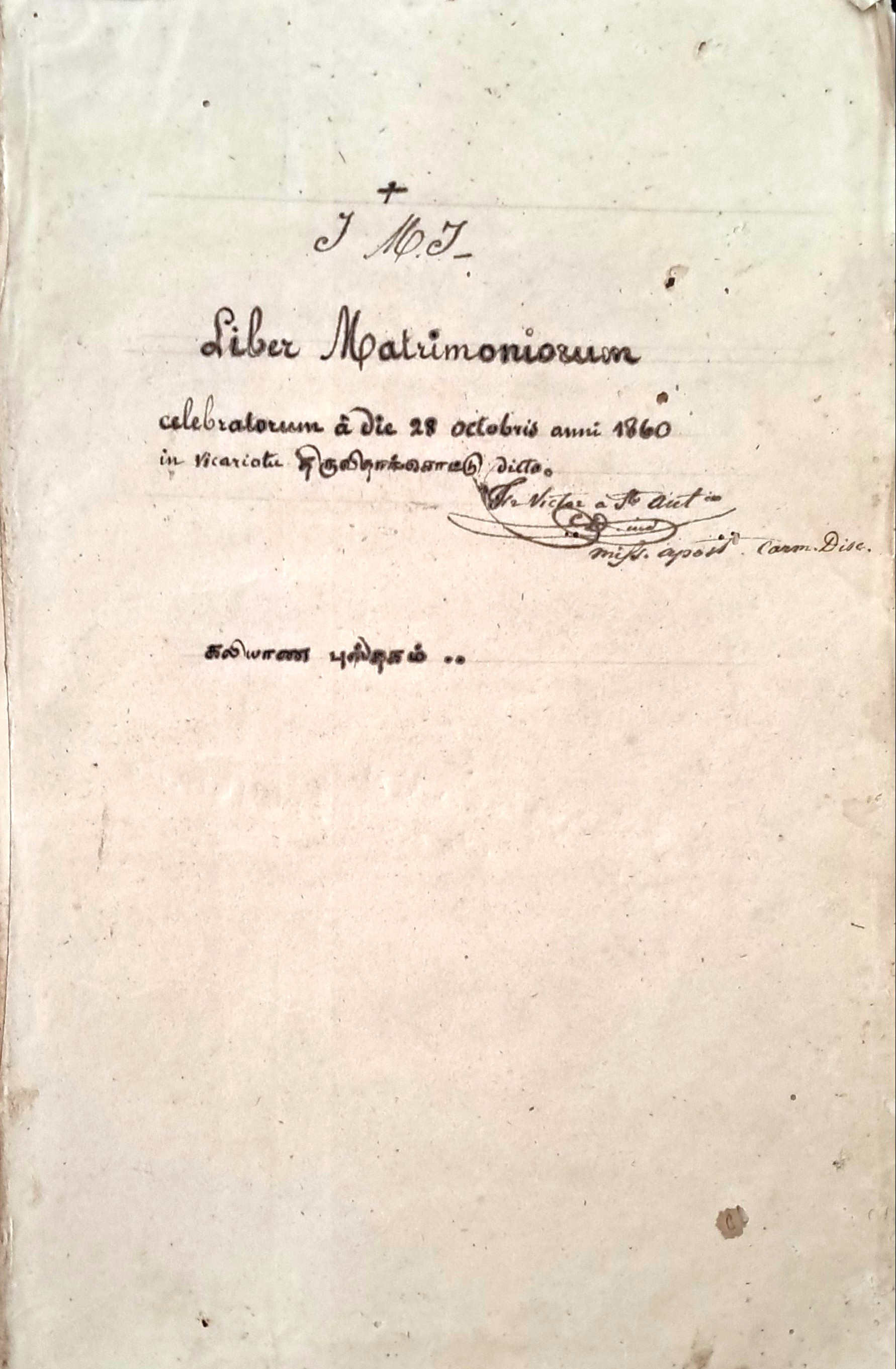 First Betrothal Register signed by Fr. Victor on 28.10.1860.